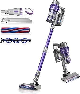 If the noise level of other types of suction cups bothers you, the Laresar CJD426 Cordless Vacuum performs incredibly silently and has a low noise level. Cleaning is much easier with this device because it can be spun up to 270 degrees. It also comes with a built-in LED light to help you spot potential debris. With only one click, you can empty and use the 0.8L large capacity dust cup.