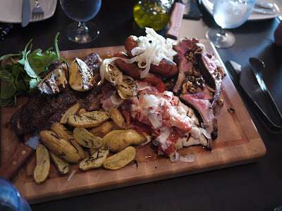 Wanting to taste a bit of everything, we ordered the arrosto misto, a platter of lamb, sausage, chicken cacciatore and Bistecca Fiorentina, and a side of roasted potatoes. The size of the platter was impressive as the server struggled to place it on our table. This particular platter costs $120 but remember, that’s good for four people.